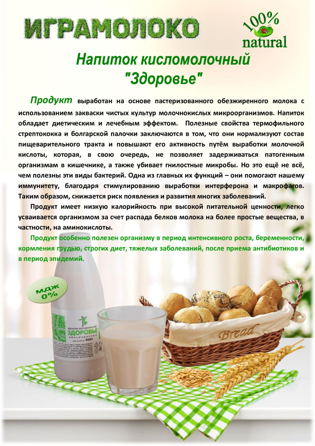 Уникальный продукт "Здоровье" с массовой долей жира 0% - только в сети магазинов "Играмолоко".